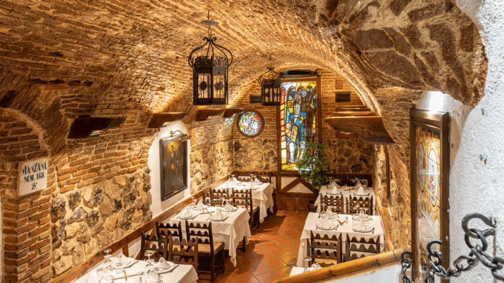 Step inside, and the air feels heavier—like history breathing through brick. The vaulted cellars glow with warm lamplight, and waiters in period dress serve traditional Castilian dishes: roast lamb, garlic soup, and Rioja wine poured generously into terracotta jugs.